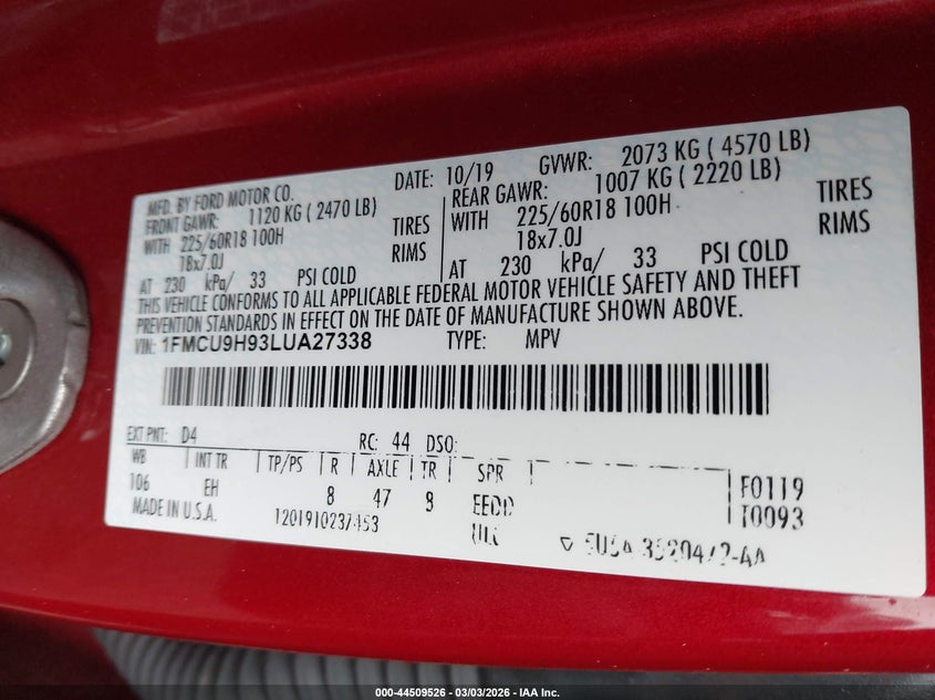 • 1FMCU9H93LUA27338