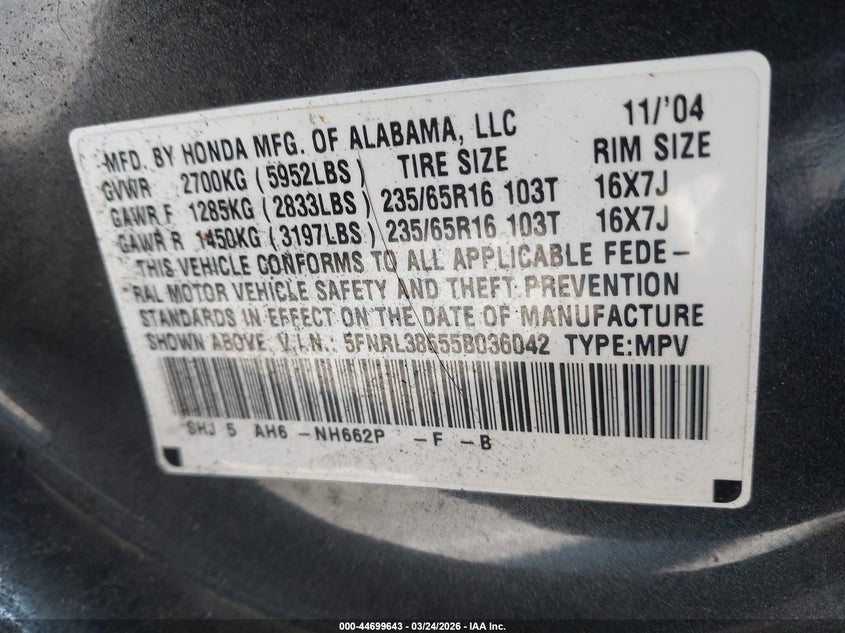 • 5FNRL38655B036042