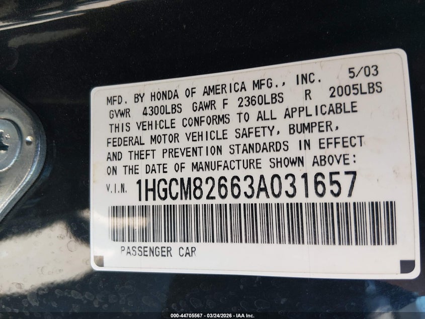 • 1HGCM82663A031657