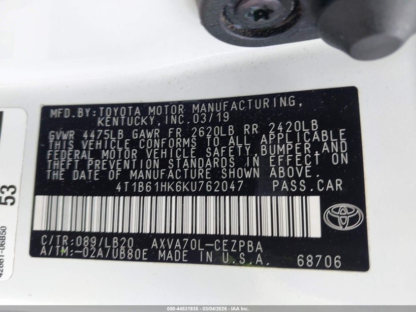 • 4T1B61HK6KU762047