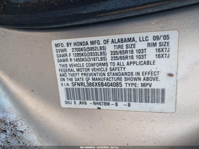 • 5FNRL386X6B404085
