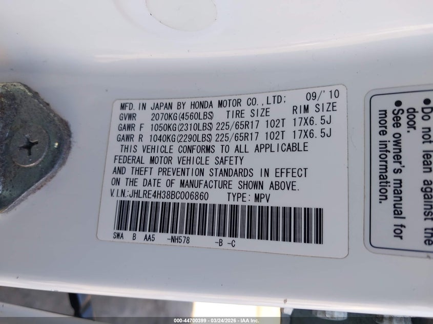 • JHLRE4H38BC006860