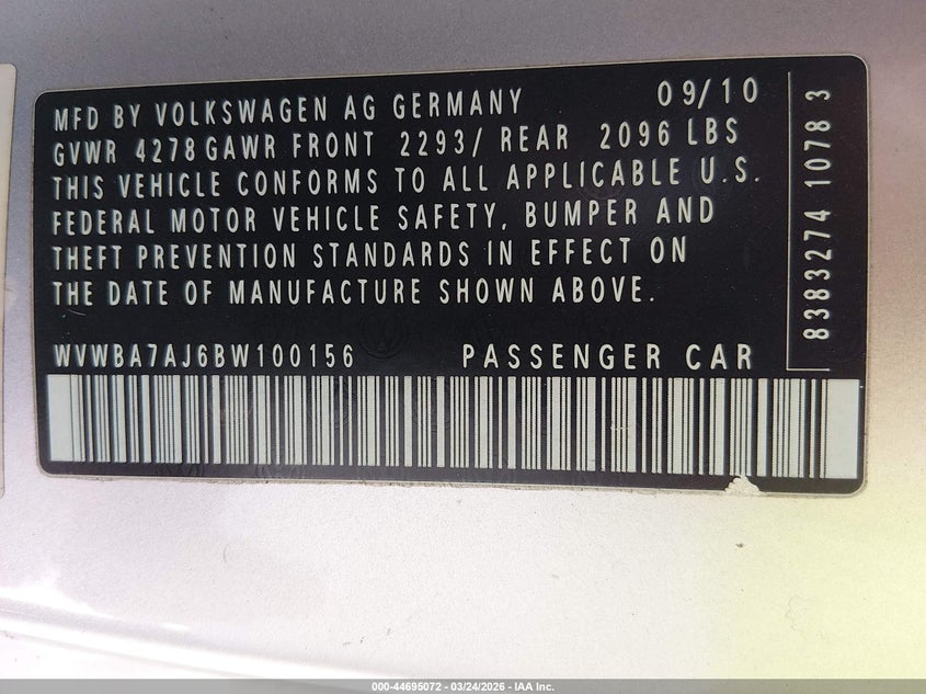 • WVWBA7AJ6BW100156