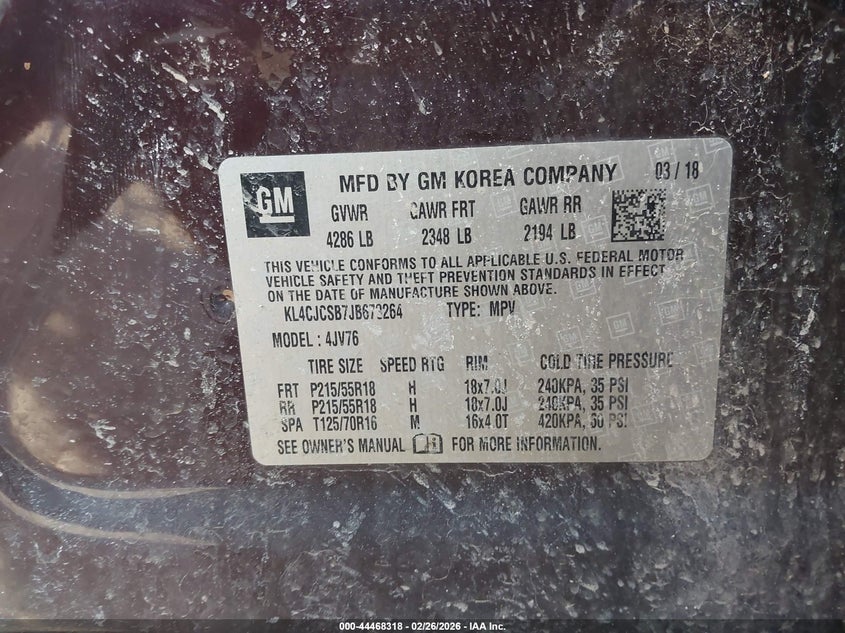 • KL4CJCSB7JB673264