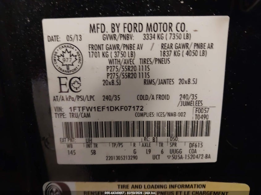 • 1FTFW1EF1DKF07172
