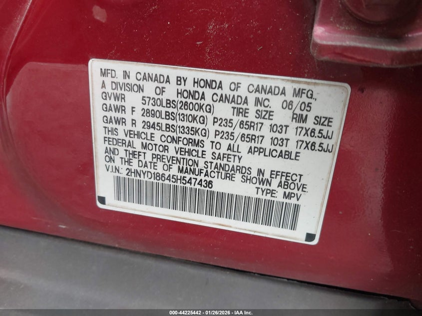• 2HNYD18645H547436