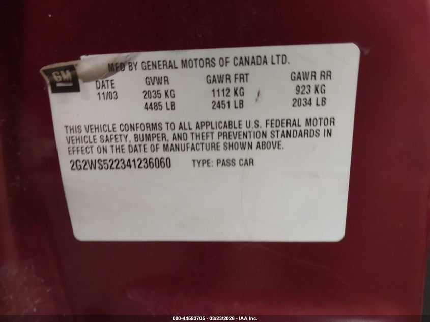 2004 PONTIAC GRAND PRIX GT2 for Sale in Rice, MN