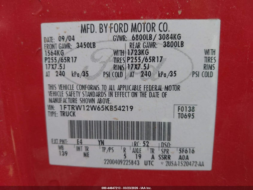 • 1FTRW12W65KB54219