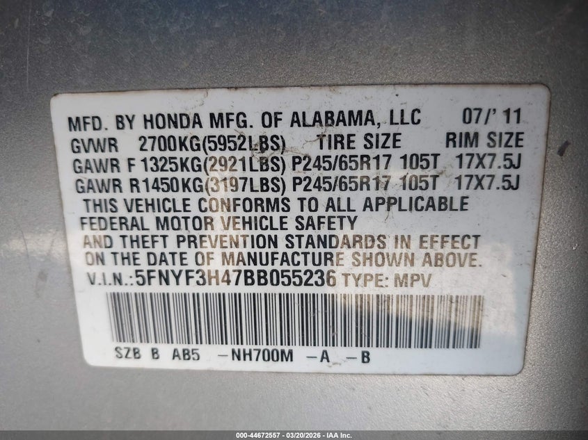 • 5FNYF3H47BB055236