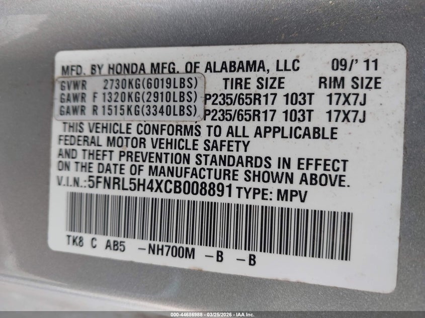 • 5FNRL5H4XCB008891