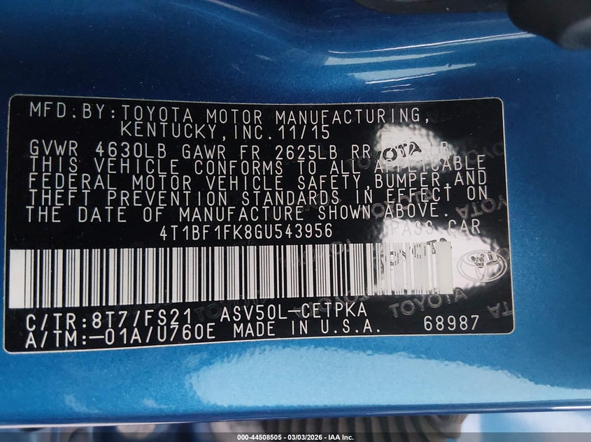 • 4T1BF1FK8GU543956