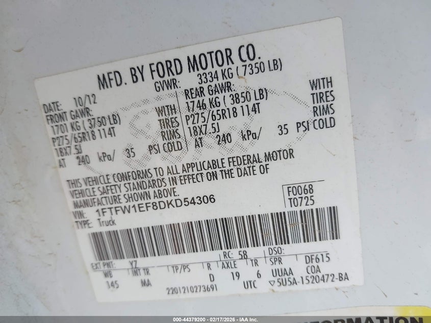 • 1FTFW1EF8DKD54306