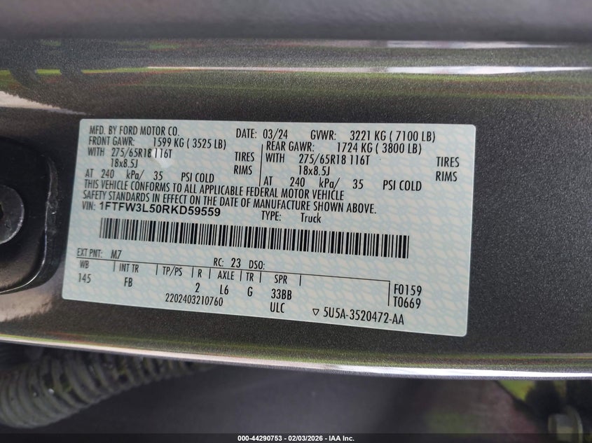 • 1FTFW3L50RKD59559