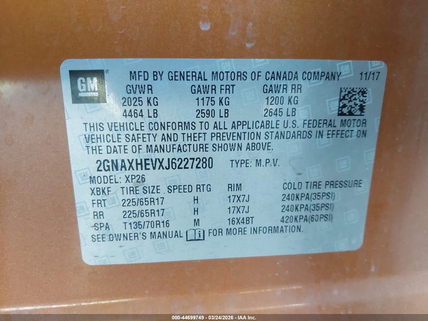 • 2GNAXHEVXJ6227280