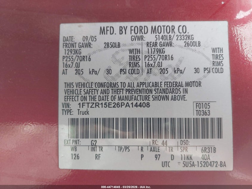 • 1FTZR15E26PA14408