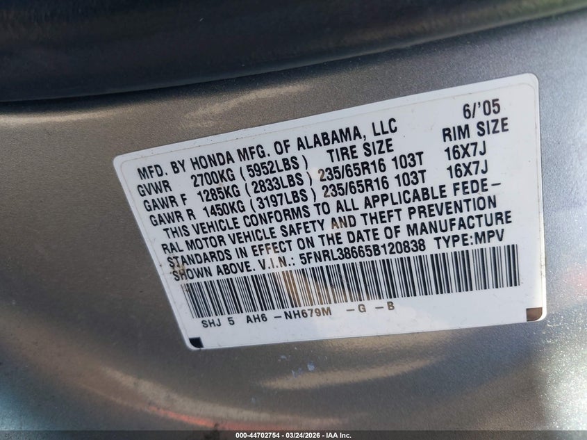 • 5FNRL38665B120838