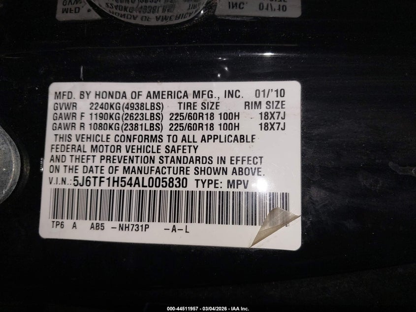 • 5J6TF1H54AL005830