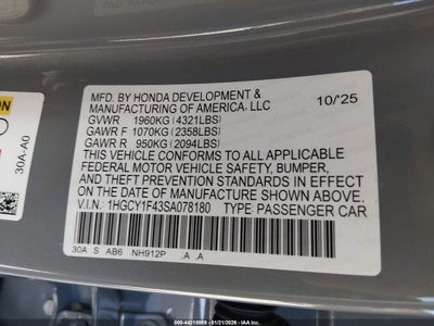 • 1HGCY1F43SA078180