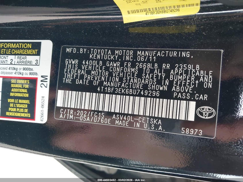 • 4T1BF3EK6BU749296