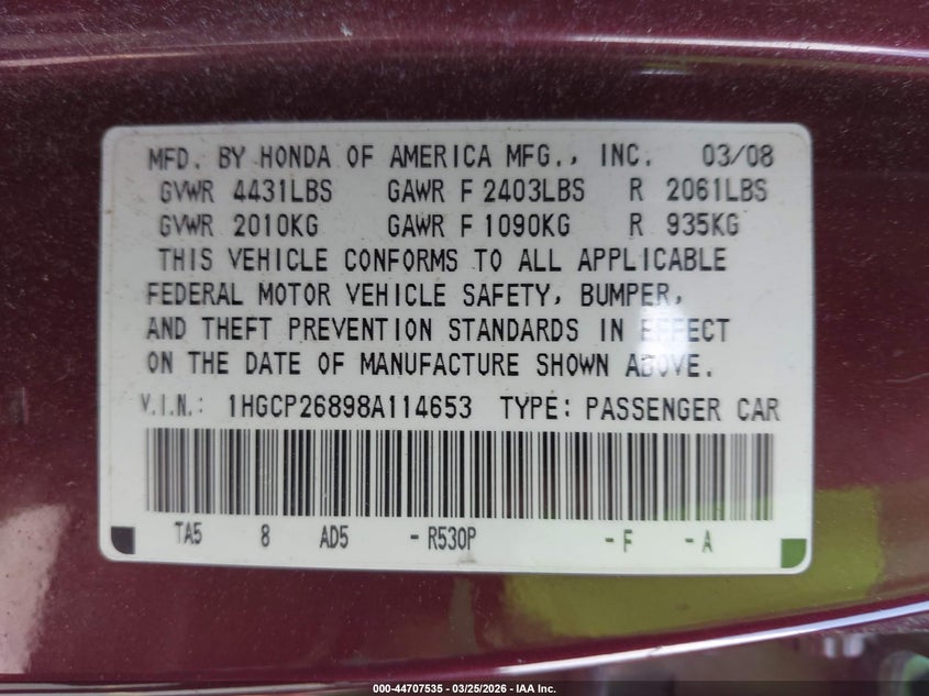 • 1HGCP26898A114653