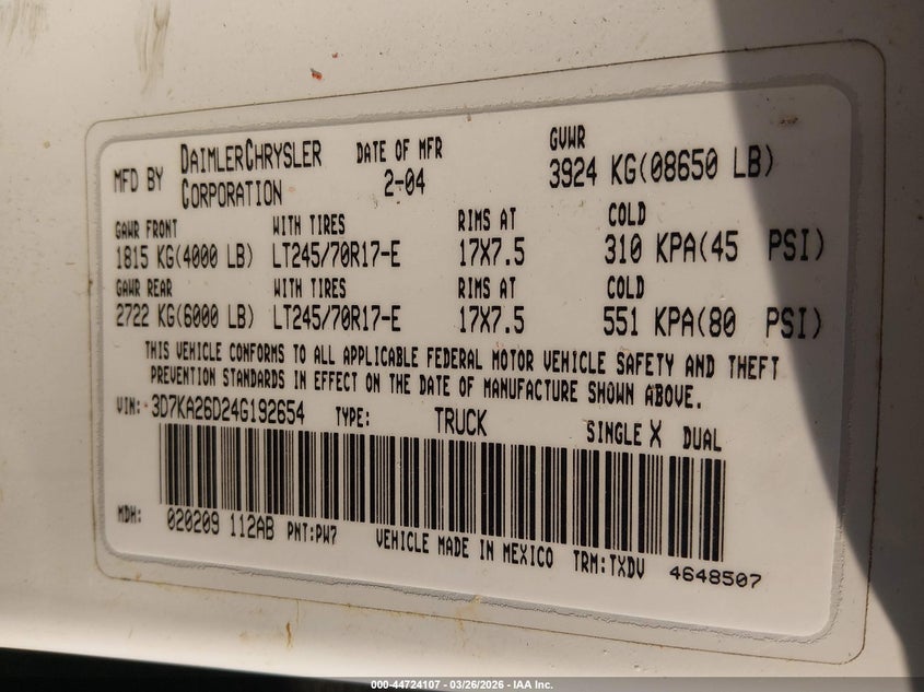 • 3D7KA26D24G192654