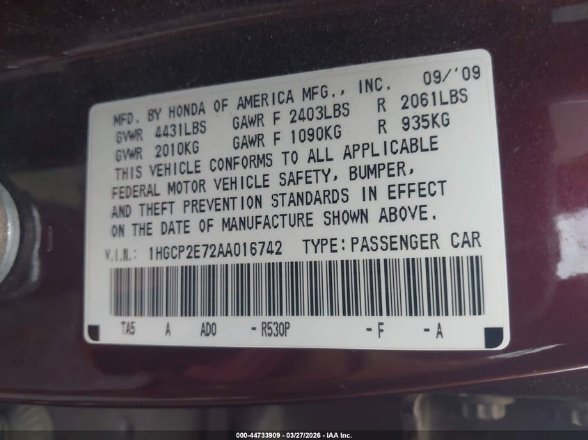 • 1HGCP2E72AA016742