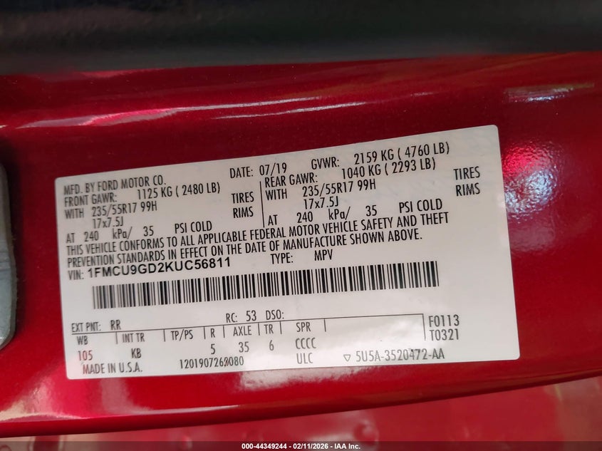 • 1FMCU9GD2KUC56811