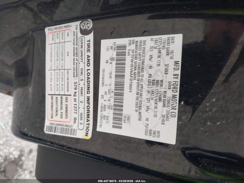 • 1FTFW1EV6AFD70001