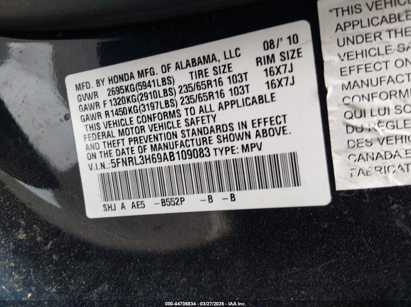 • 5FNRL3H69AB109083
