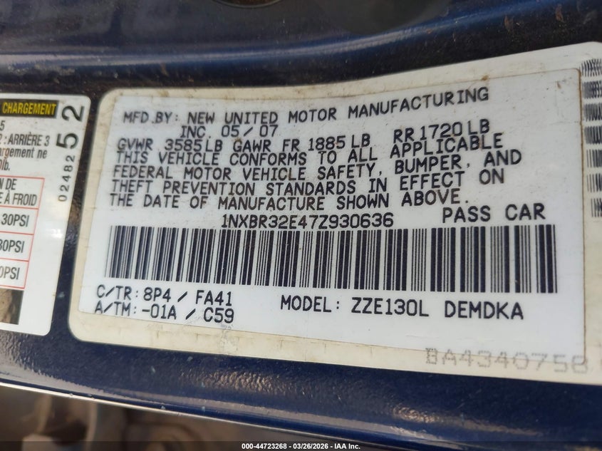 • 1NXBR32E47Z930636