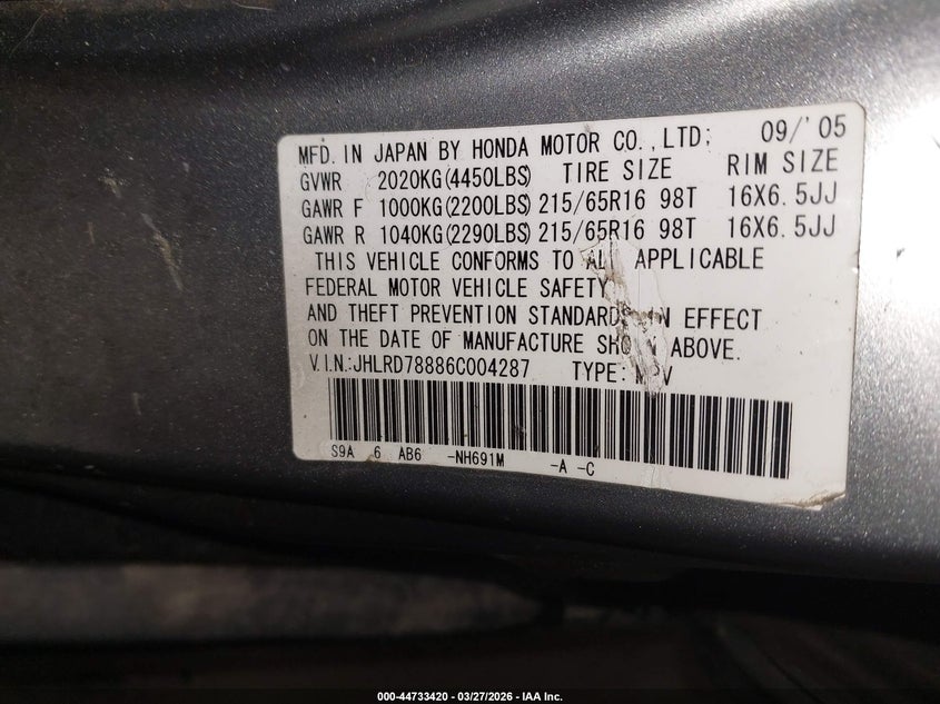 2006 HONDA CR-V EX for Sale in Rock Tavern, NY