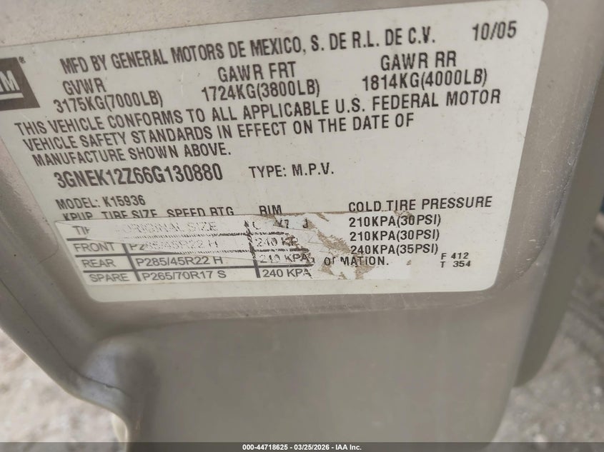 • 3GNEK12Z66G130880