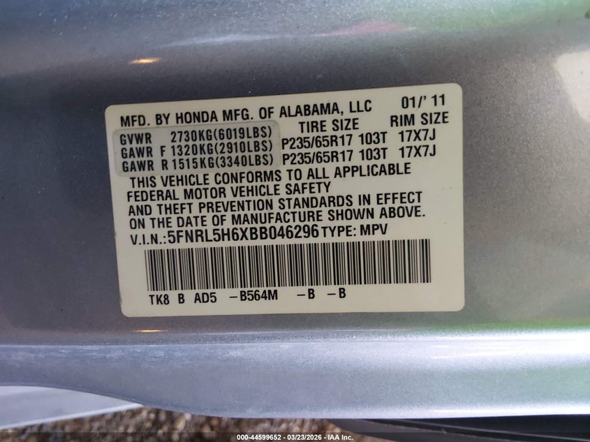 • 5FNRL5H6XBB046296