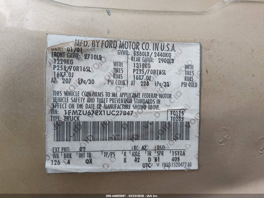 • 1FMZU67EX1UC27847