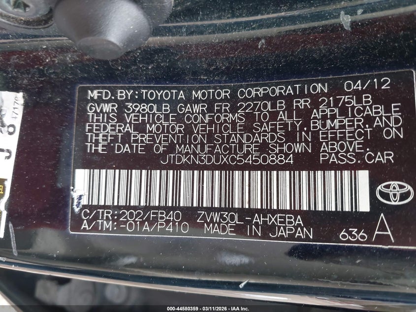 • JTDKN3DUXC5450884