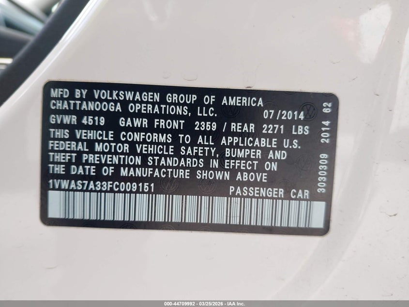 • 1VWAS7A33FC009151