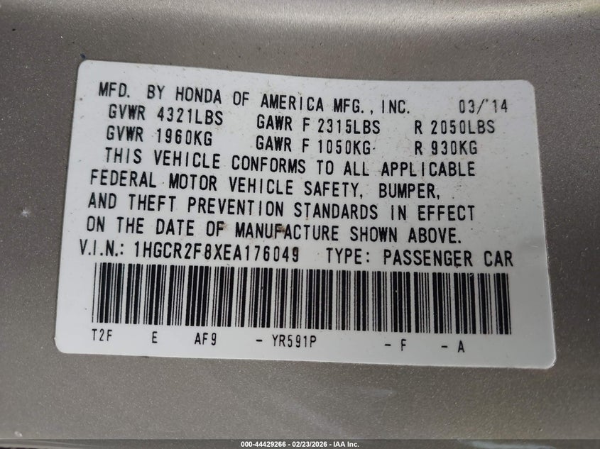 • 1HGCR2F8XEA176049