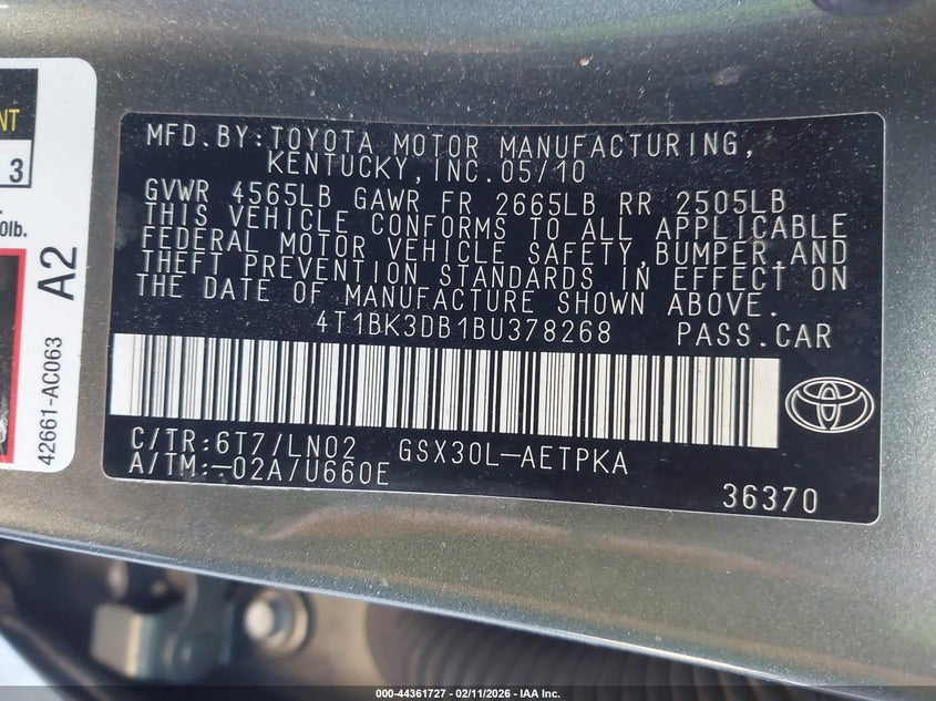 • 4T1BK3DB1BU378268