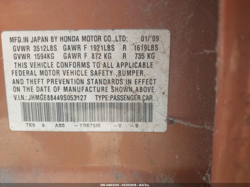 • JHMGE88449S053127