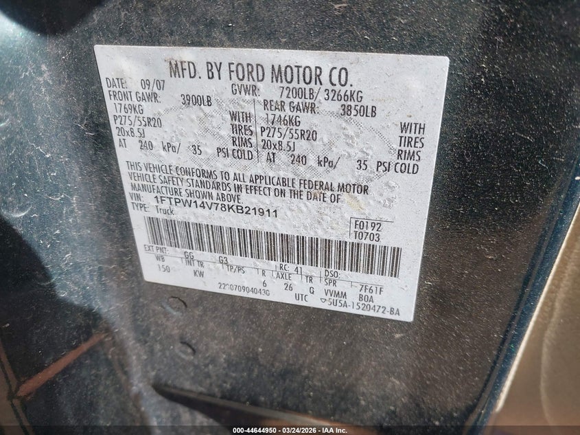 • 1FTPW14V78KB21911