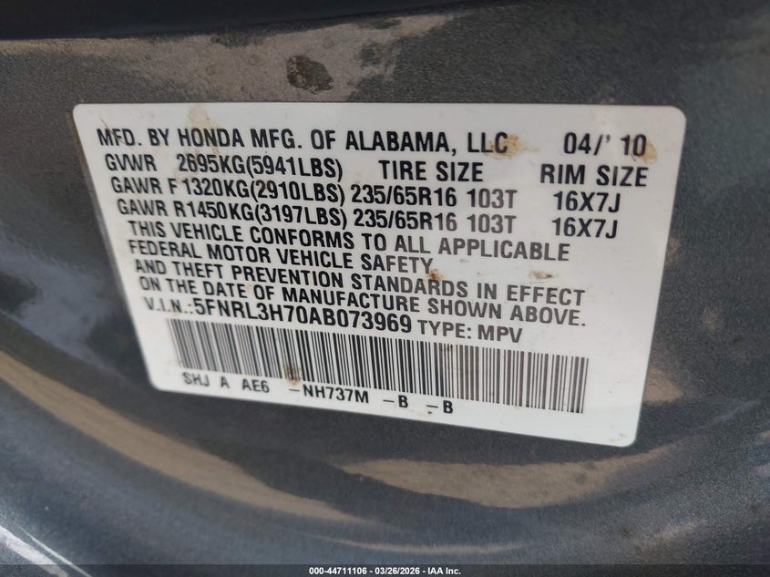 • 5FNRL3H70AB073969