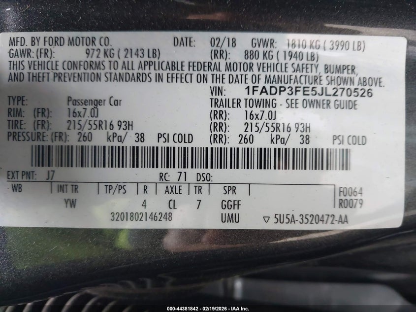 • 1FADP3FE5JL270526