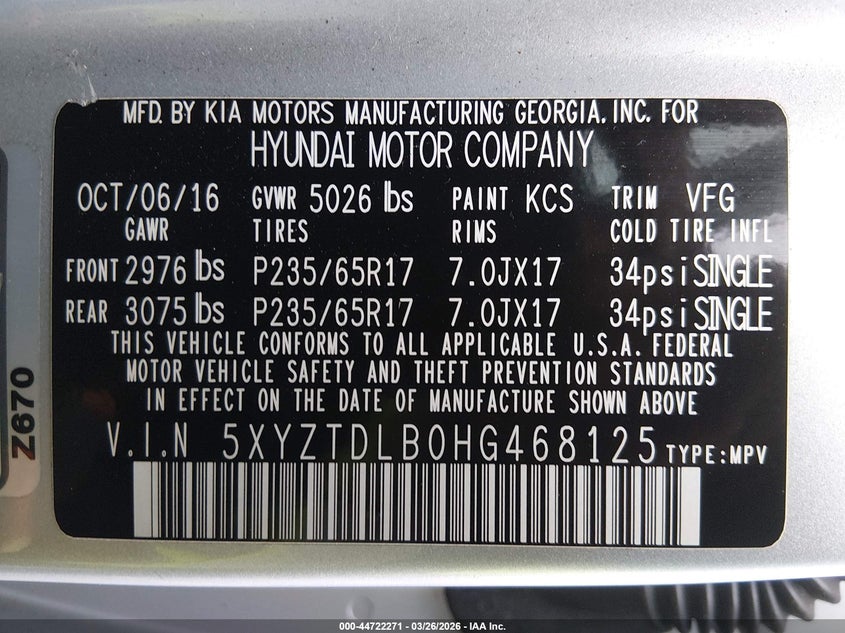 • 5XYZTDLB0HG468125