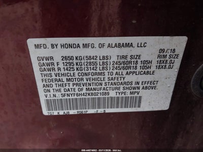 • 5FNYF6H42KB021089