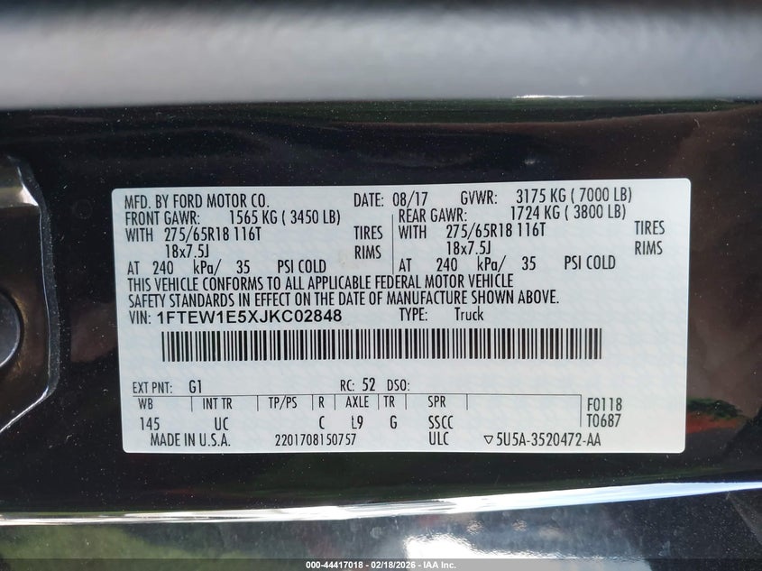 • 1FTEW1E5XJKC02848