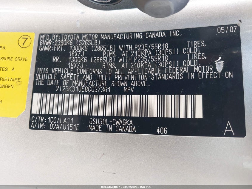 • 2T2GK31U58C037361