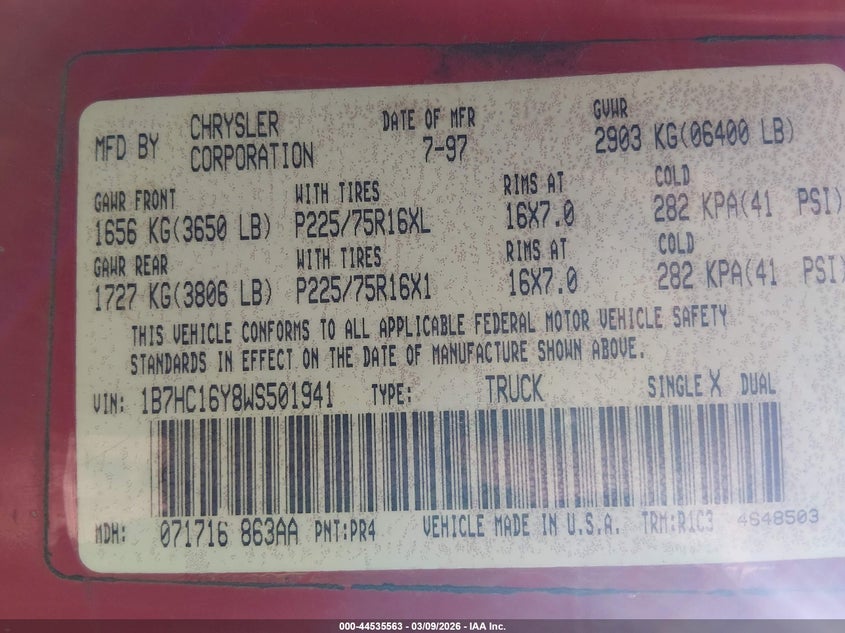 • 1B7HC16Y8WS501941