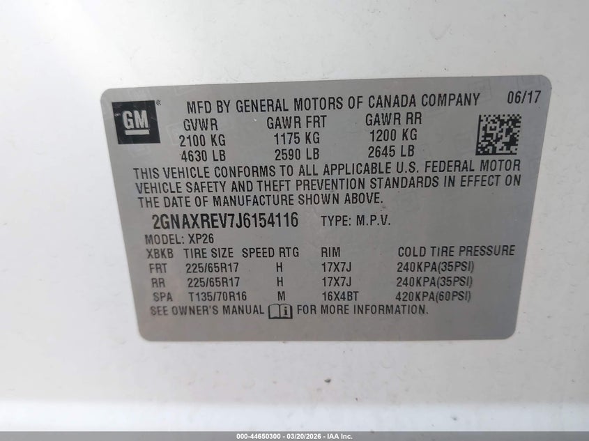 • 2GNAXREV7J6154116