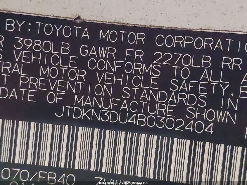 • JTDKN3DU4B0302404