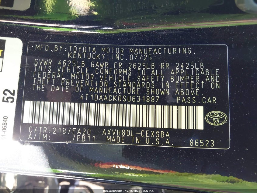 • 4T1DAACK0SU631887